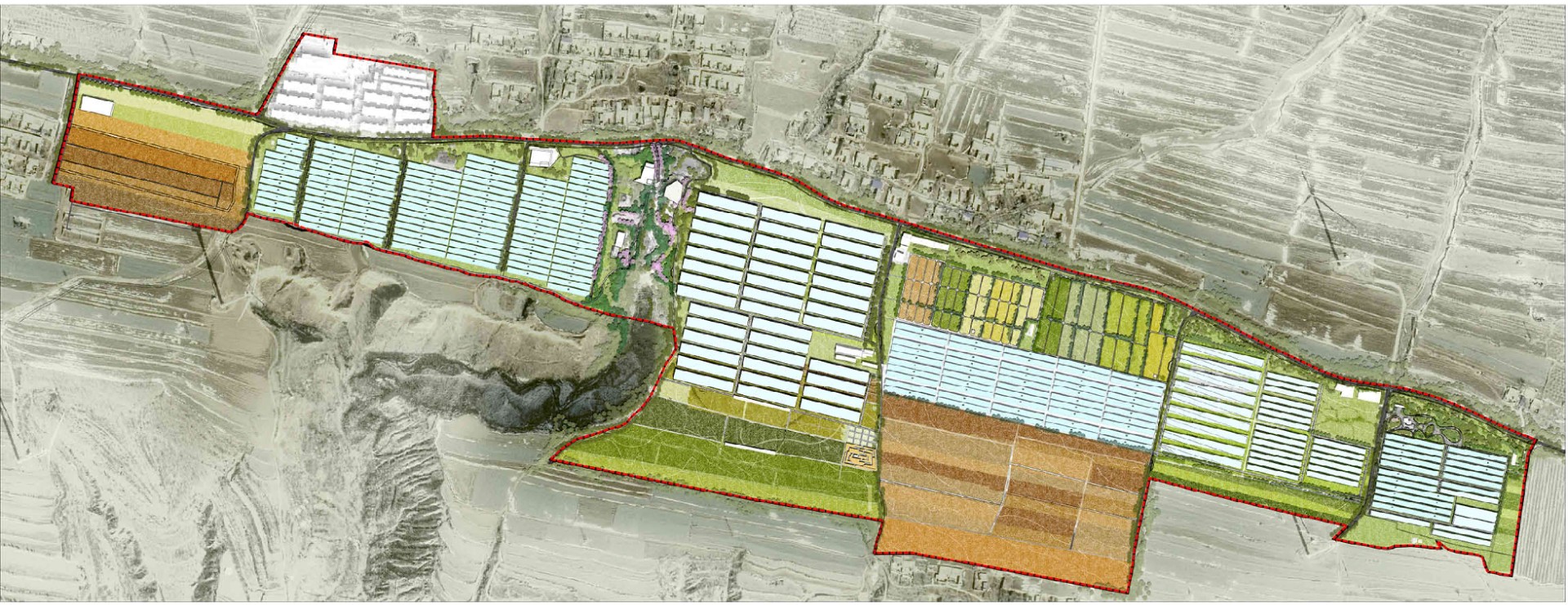 在设计中充分考虑现状扶贫、脱贫的安置情况,对基地内现有的农业扶贫项目和后期规划产业顶目进行融台,形成全方位、全系列、多功能、多链条的农业扶贫产业项目,为张茅乡村民提供多种就业岗位,实现村民"在家门口就业"这一愿景,提升村民经济收入,引导村民致富。