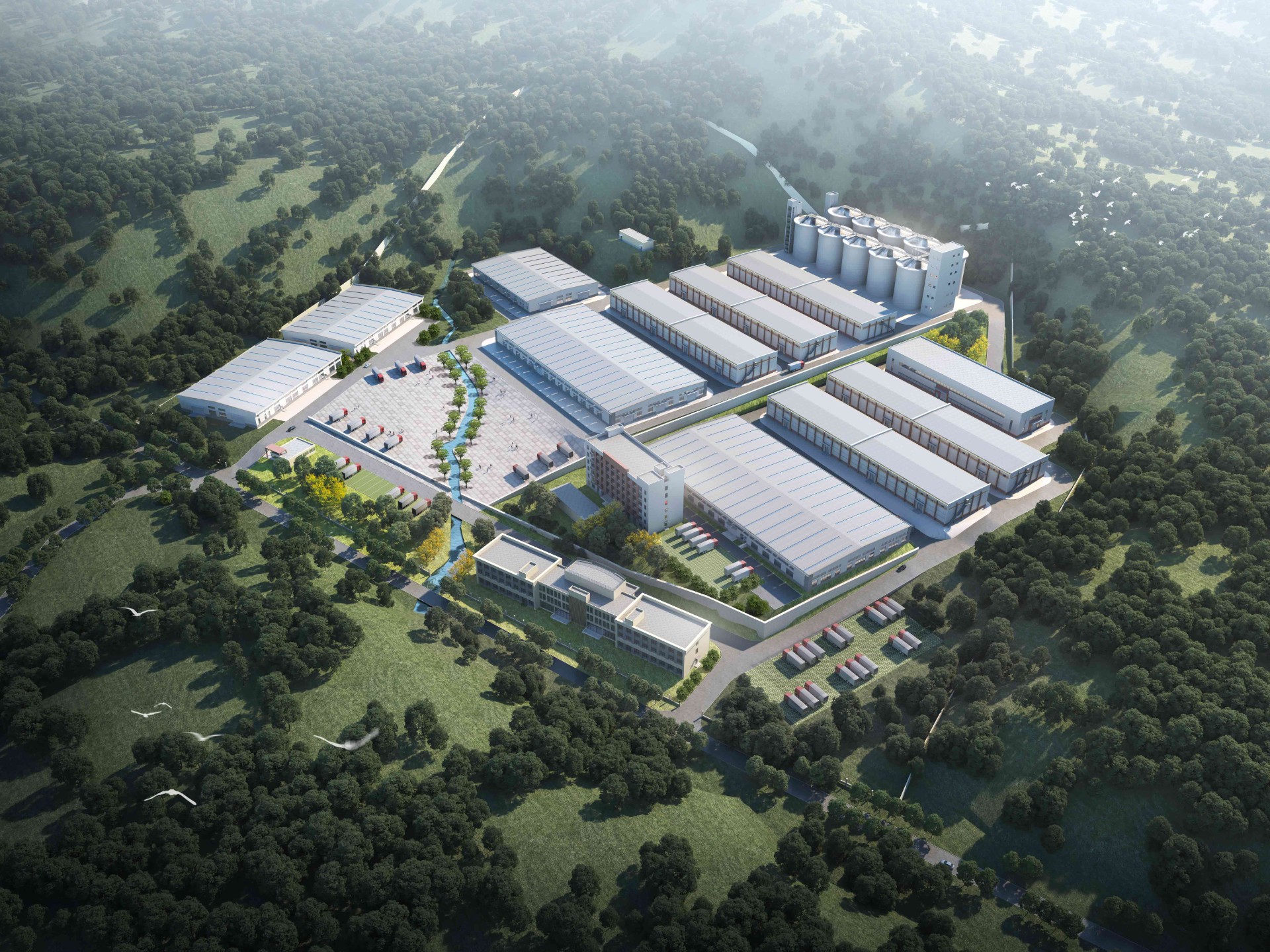 设计强调"科学规划、合理布局、功能齐全、讲究实效"结合粮油仓储发展趋势,充分考虑方城县粮食储备的运营特点,立足当前,满足功能需求。合理配套各功能设施、统筹安排总体布局,建设成为总平面布置合理、功能分区明确、物流组织畅通、技术成熟先进,管理科学、高效的现代化粮油储备库。