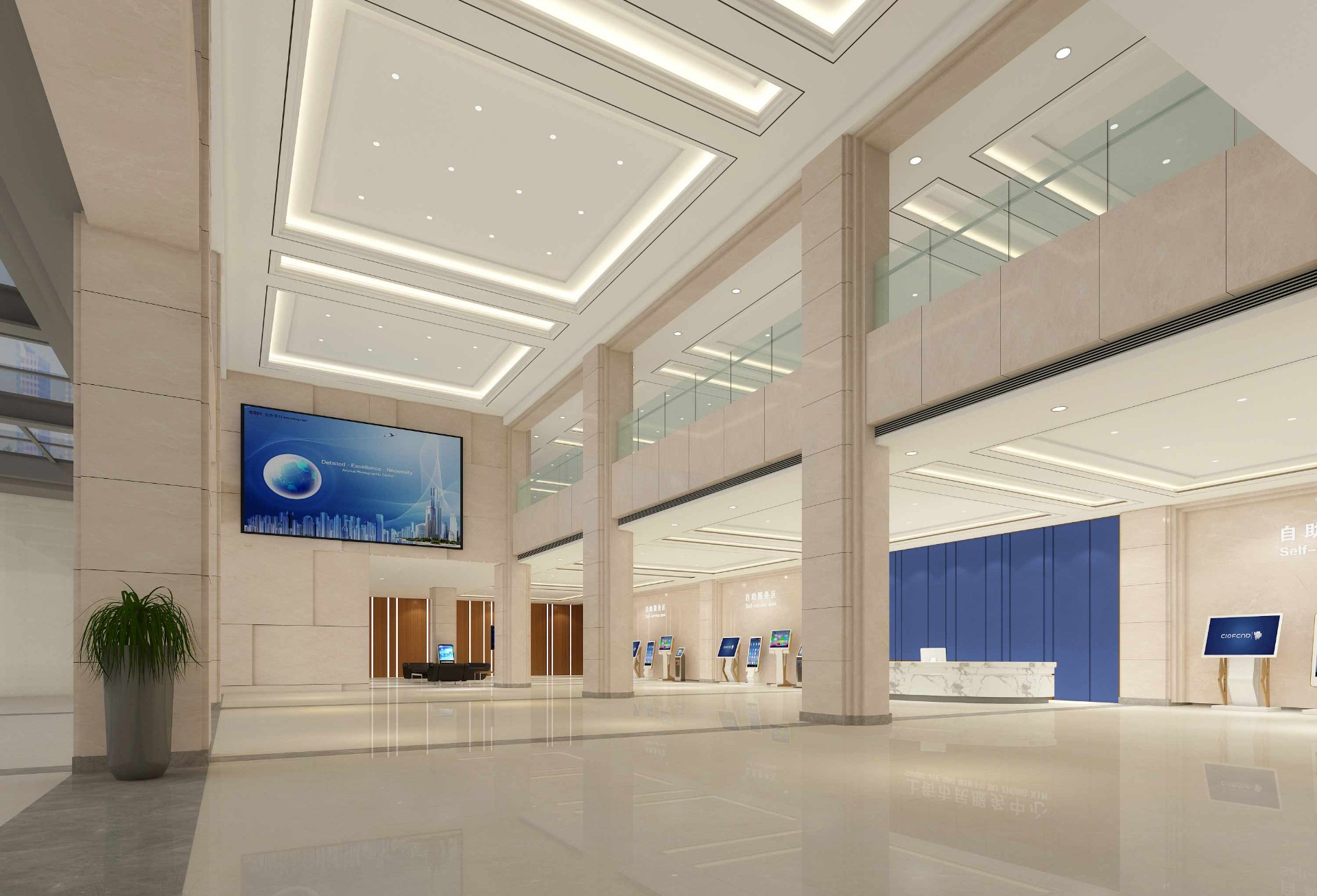 设计理念:作为区大型综合性公共服务中心,既是政府形象的延伸,又是上街力量的展示,是城市形象和意识形态在服务职能上的集中体现。以"来自人民、植根人民、服务人民"为出发点,因地制宜,实现公开透明的开场办公氛围和便捷高效的工作效率。在布局、形态及装饰语言各个细节上,要传达的讯息是:开放、高效、便捷、发展。