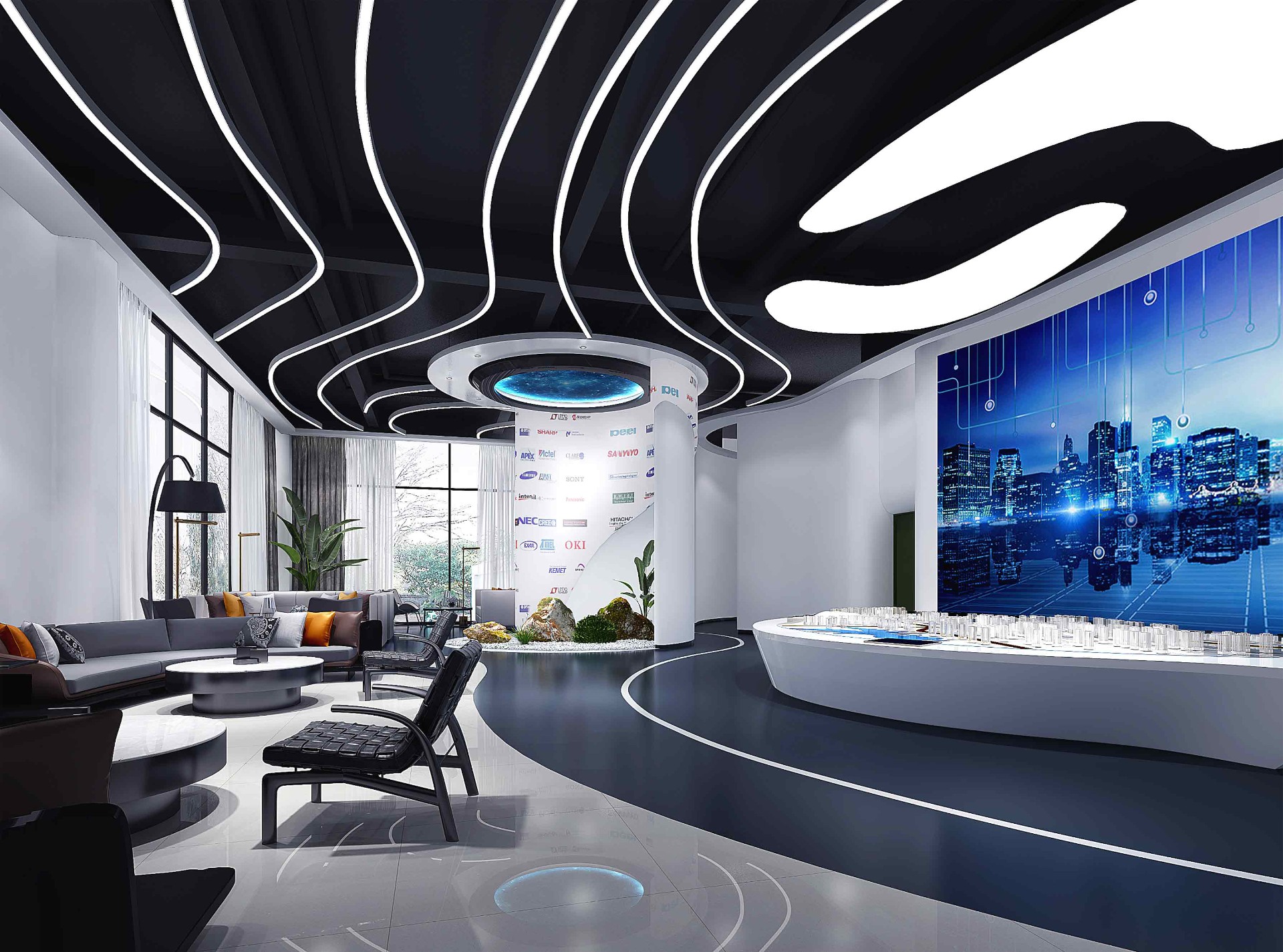 设计理念:运用前瞻的设计思维和丰富的设计手段打造凸显高新技术产业集群的缩影;材质与颜色碰撞、多维度体验虚拟现实,用整体造型的围合与层叠体现科技魅力与至臻体验的完美结合。