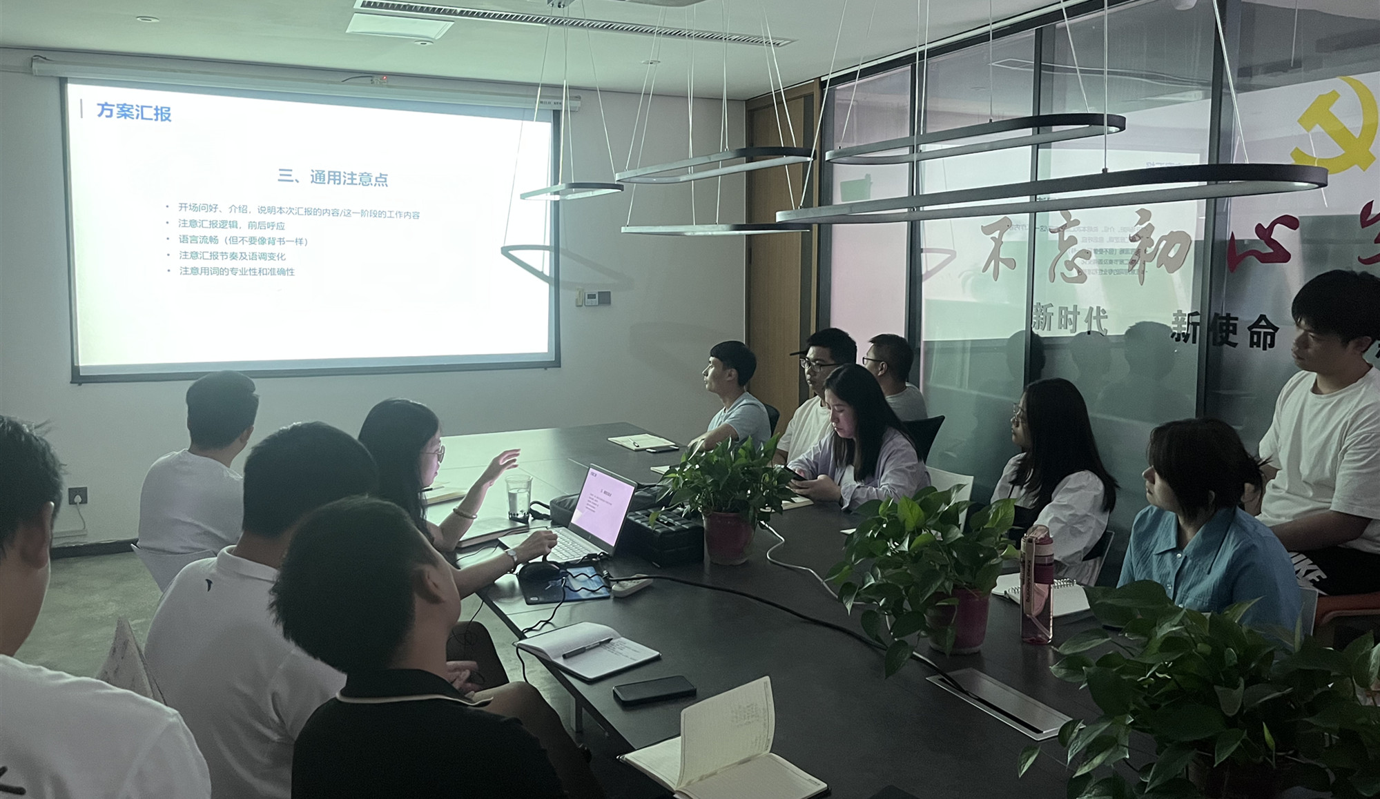 2023年7月28日人禾设计集团方案规划组组织召开汇报交流会,就汇报类型、沟通方式、对接技巧、节奏把控等方便进行交流分享,旨在让大家在以后的项目汇报对接过程中更加明确高效、更好更快推进项目进展。